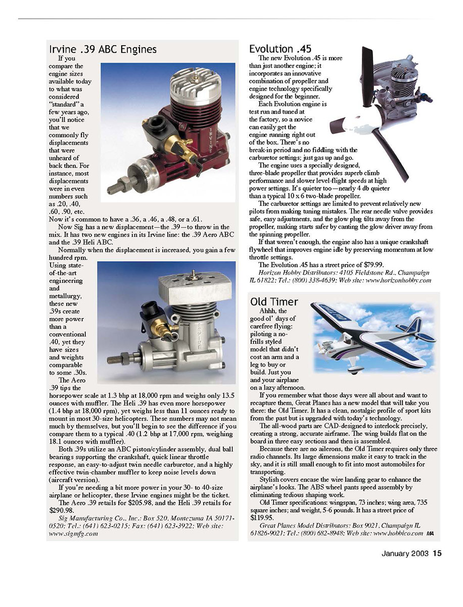 mix. It has two new engines in its Irvine line: the .39 Aero ABC