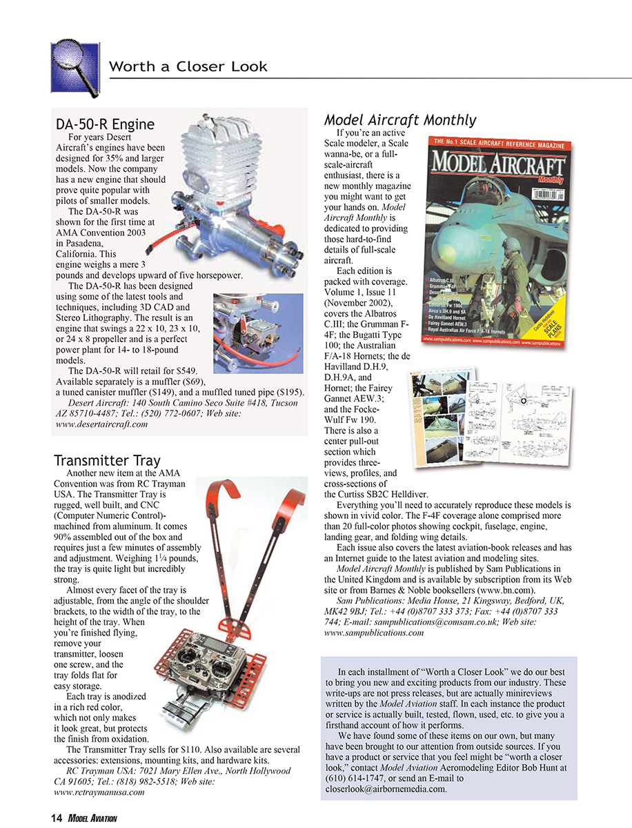 look,” contact Model Aviation Aeromodeling Editor Bob Hunt at