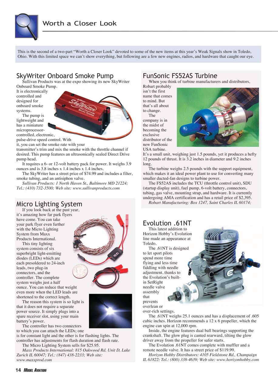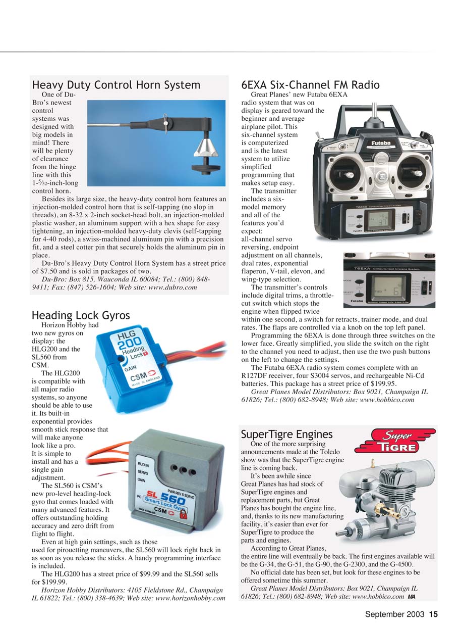 Ohio. With this limited space we can’t show everything, but following are a few new engines, radios, and hardware that caught our eye.