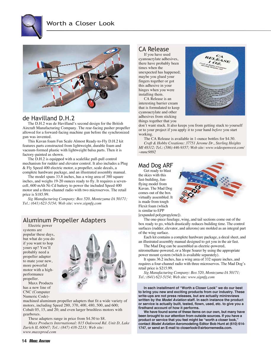 contact Model Aviation Aeromodeling Editor Bob Hunt at (610) 614-