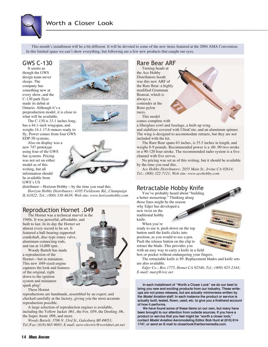 This month’s installment will be a bit different. It will be devoted to some of the new items featured at the 2004 AMA Convention.