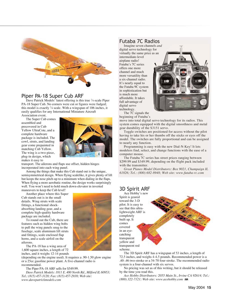 Ace Hobby Distributors: 2055 Main St., Irvine CA 92614; Tel.: