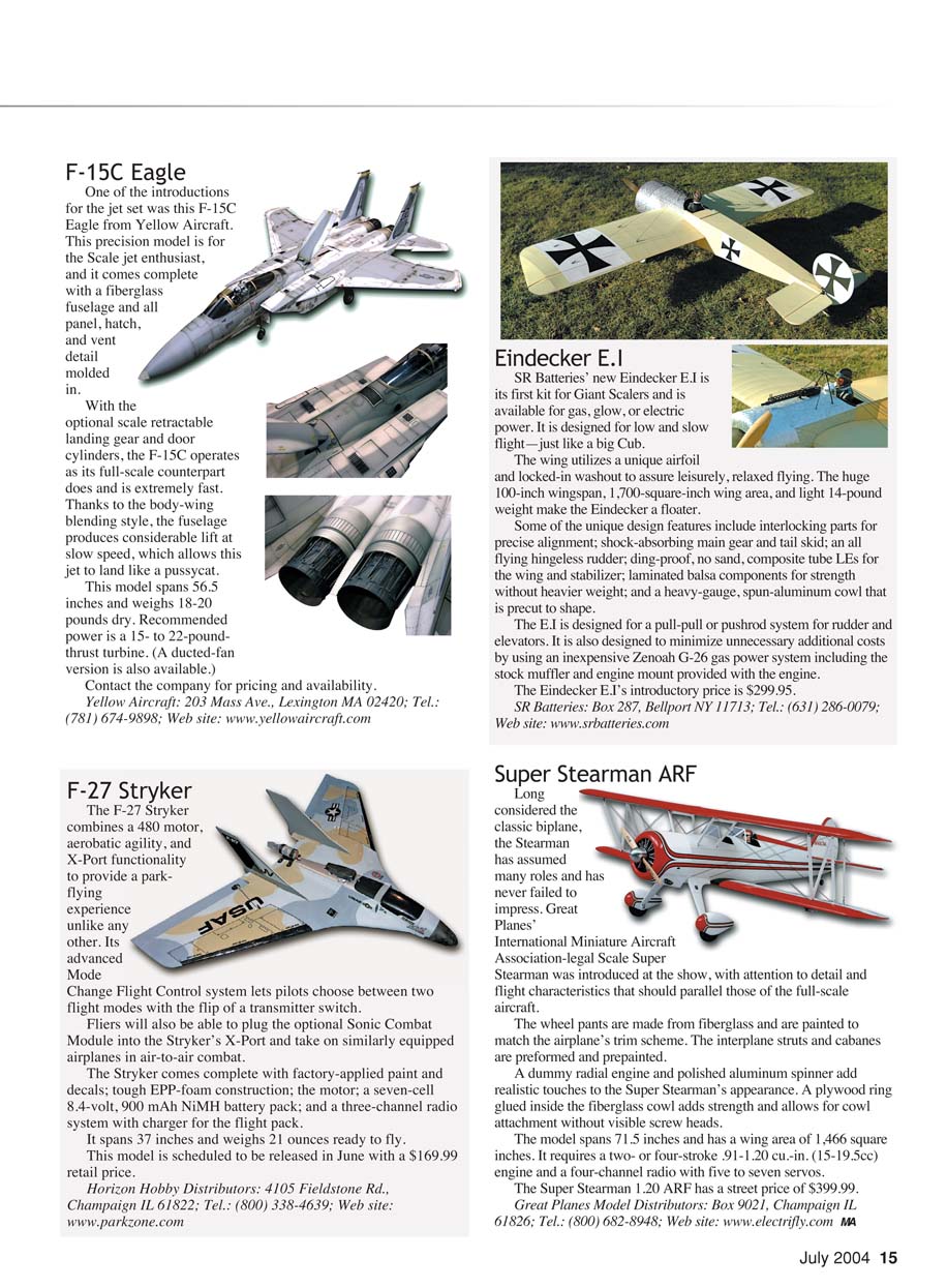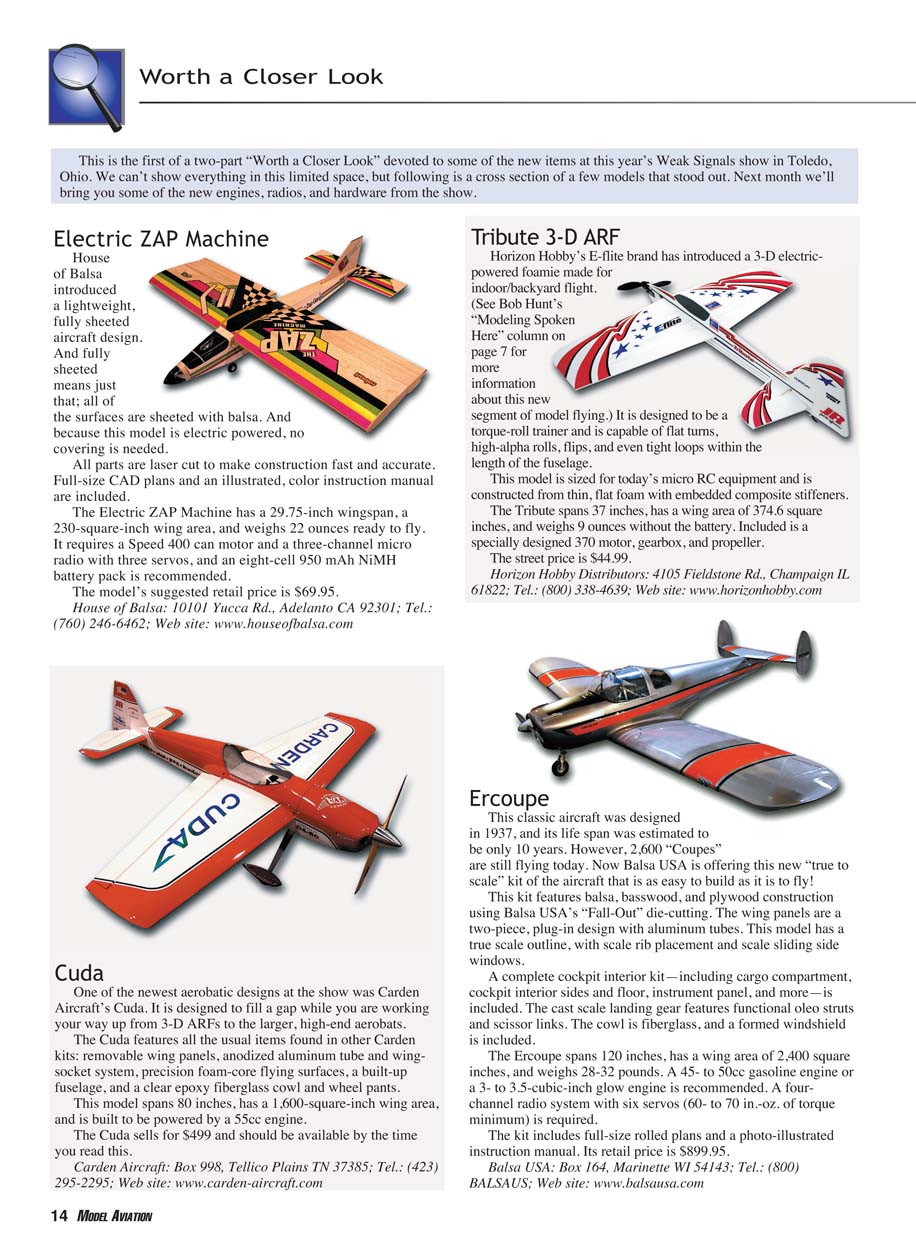 your way up from 3-D ARFs to the larger, high-end aerobats.