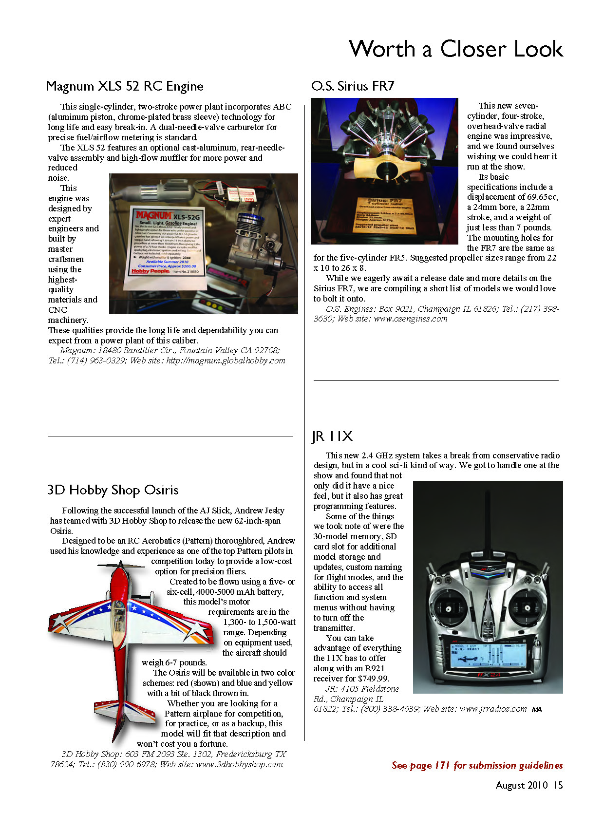 O.S. Engines: Box 9021, Champaign IL 61826; Tel.: (217) 398-