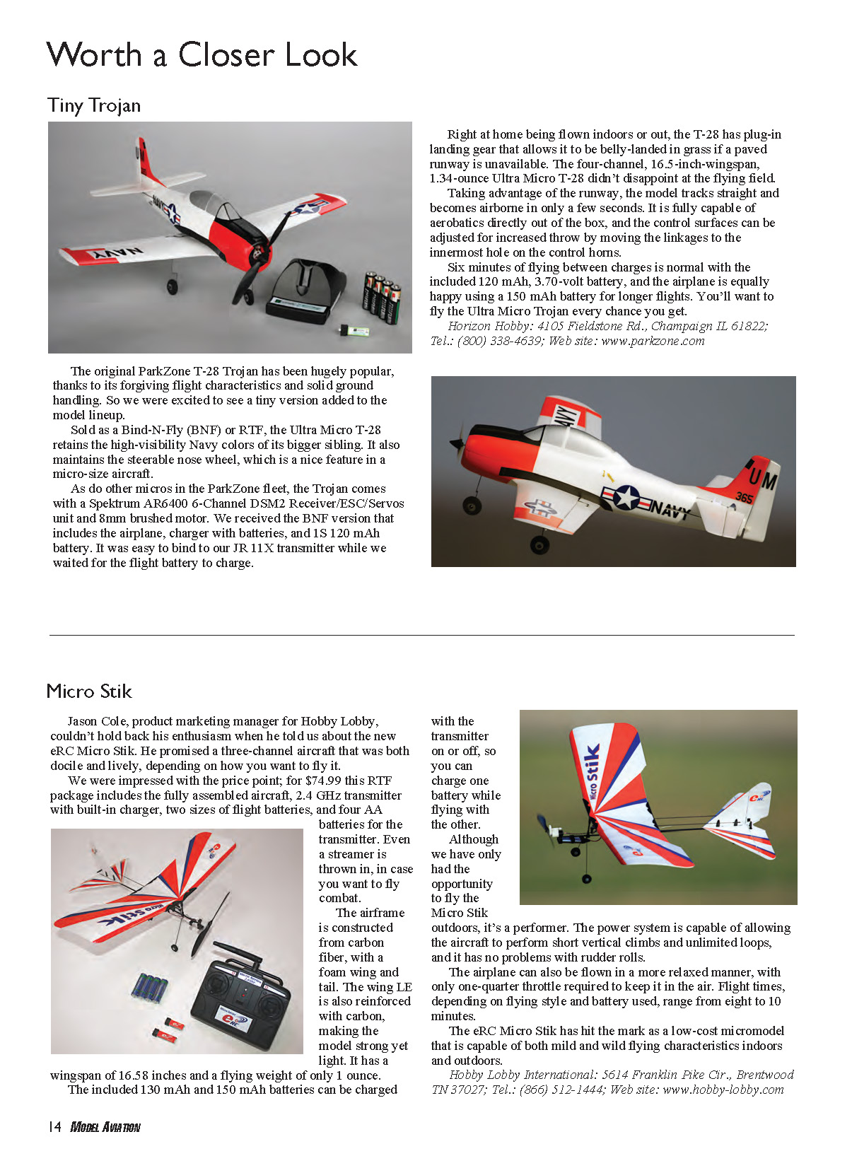 Tel.: (800) 338-4639; Web site: www.parkzone.com