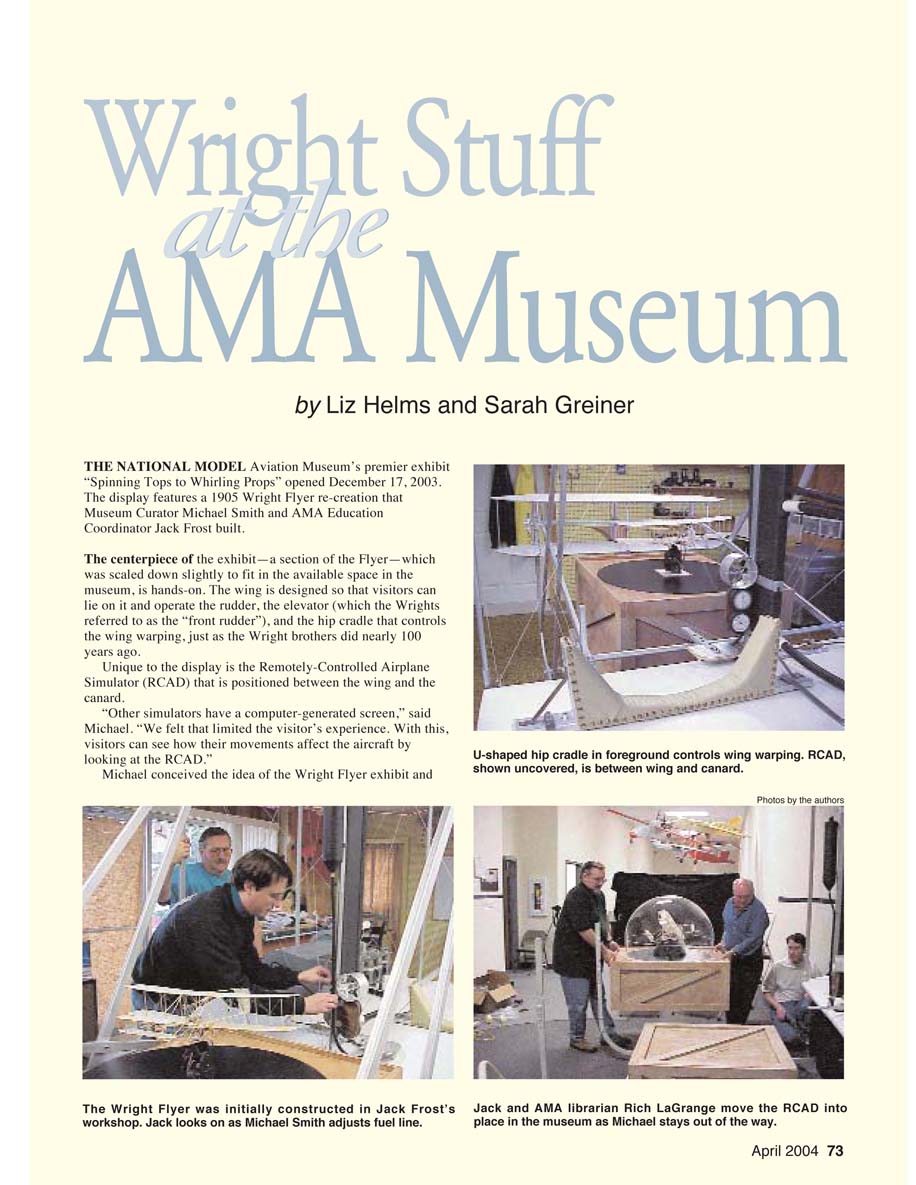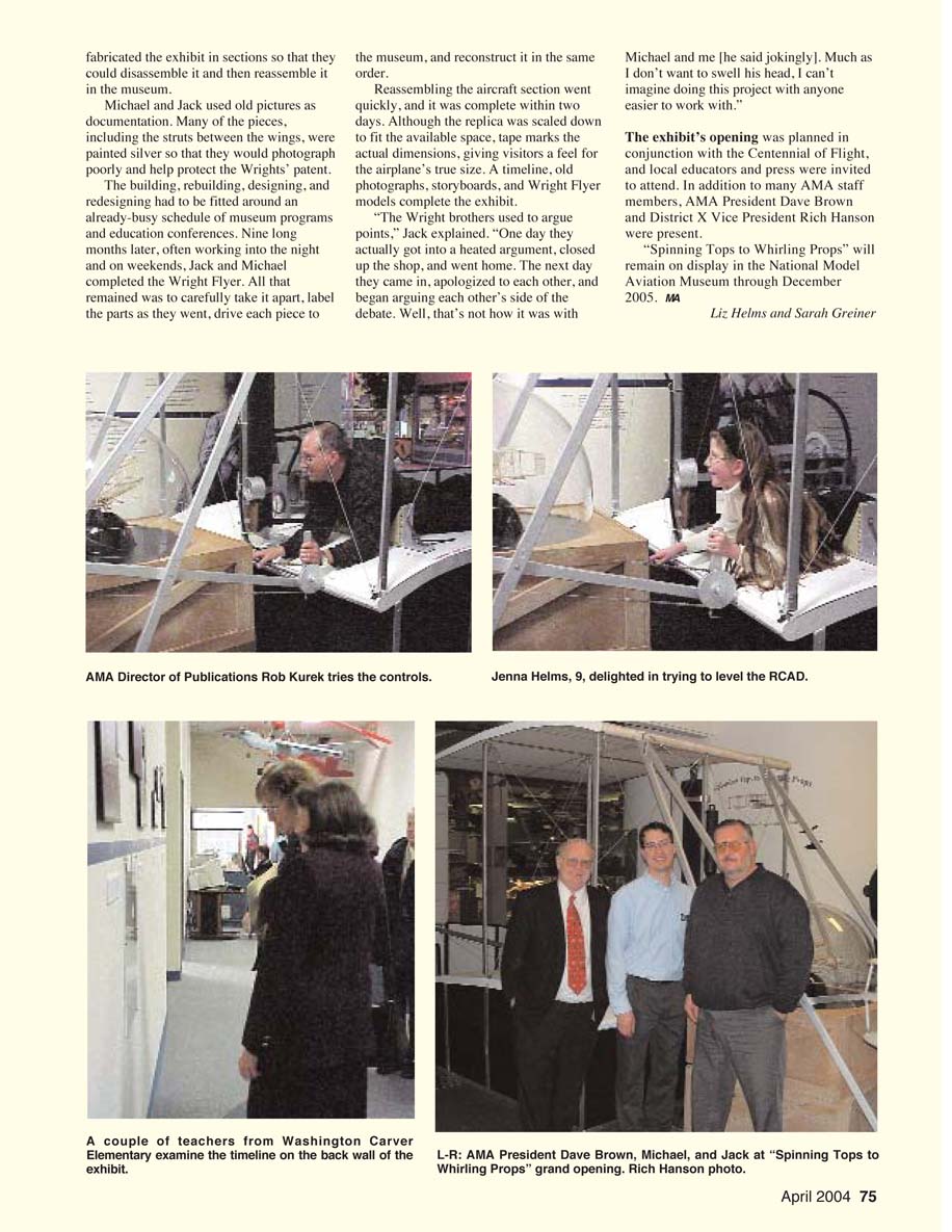 Michael conceived the idea of the Wright Flyer exhibit and