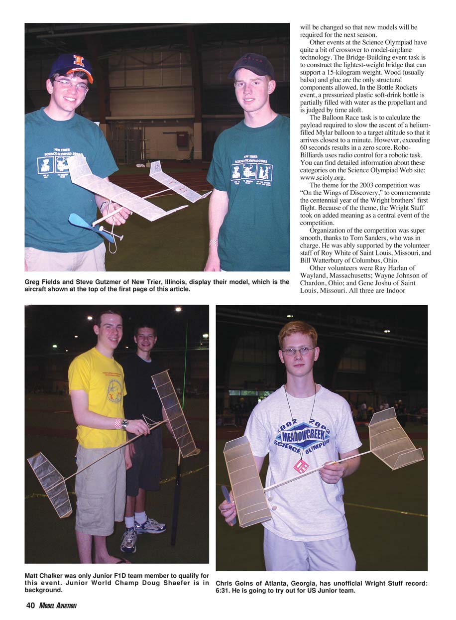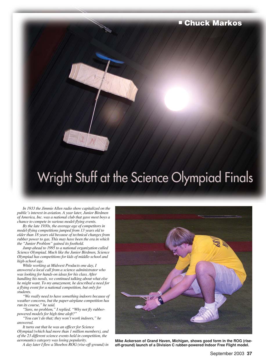 ground) launch of a Division C rubber-powered Indoor Free Flight model.