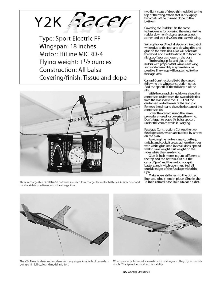 Powered by a HiLine MICRO-4 motor, the Y2K Racer has lively performance. The author gives it