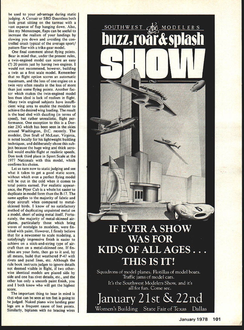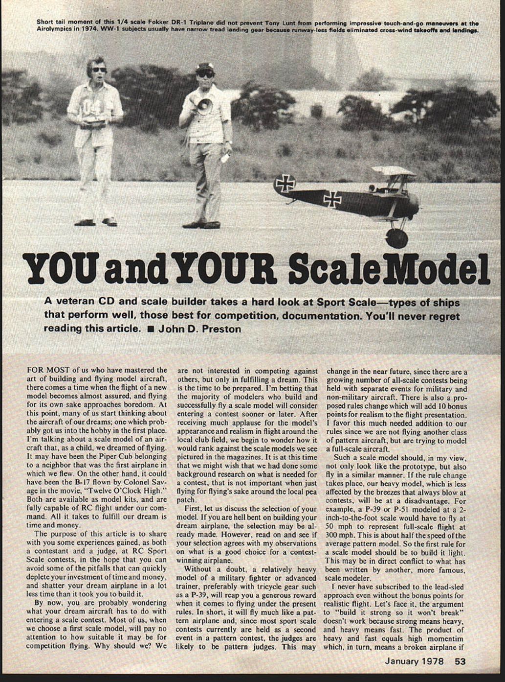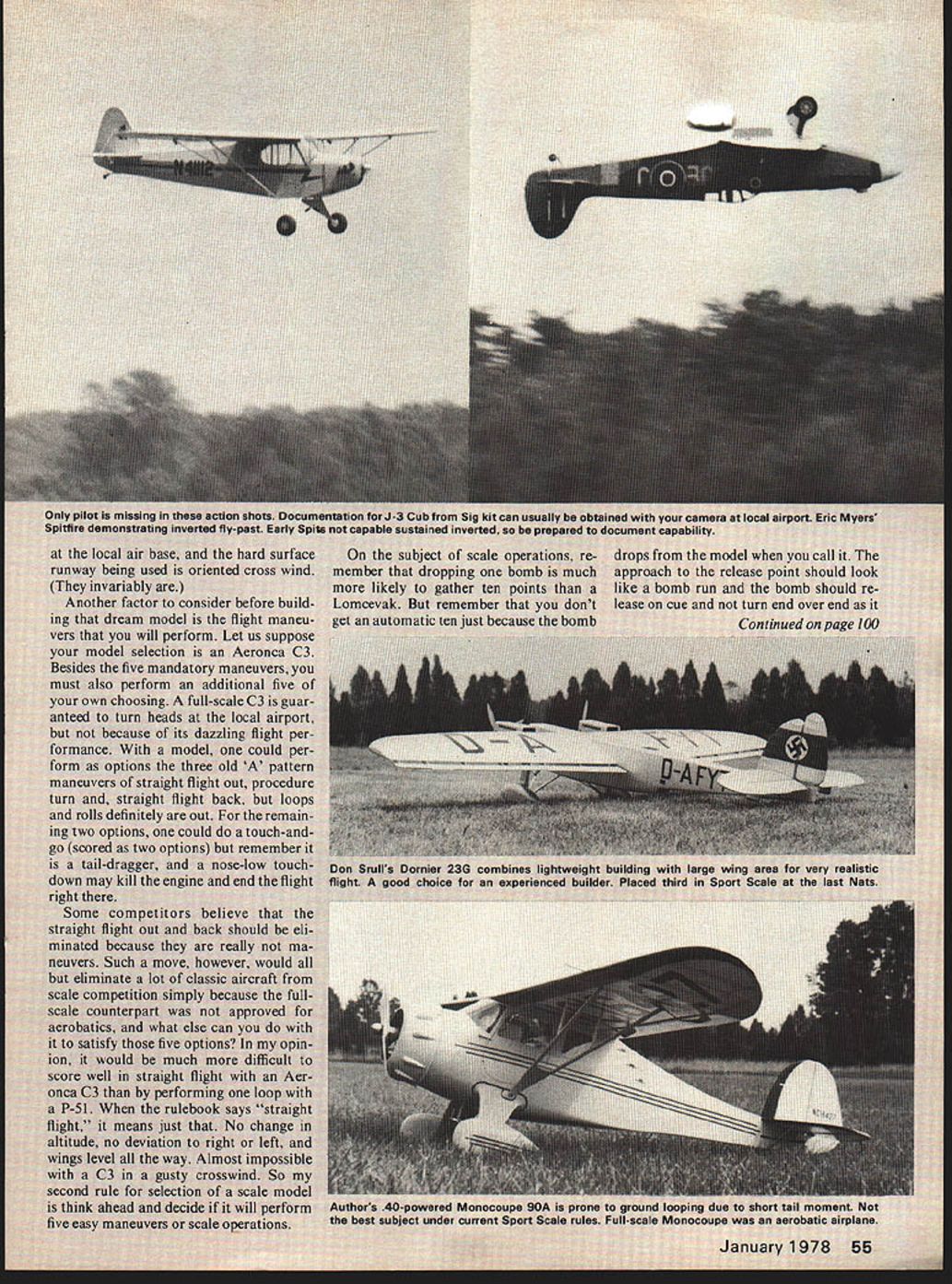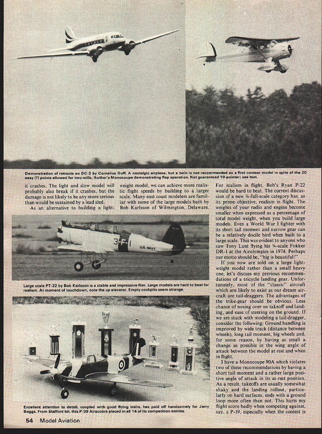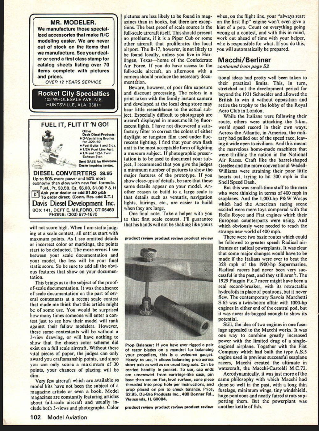 i1vv een mni anu less time flow what Cal fulfillir repared scale ma st sooner applause realism begin t inst s azines Wi arch wi imn s sake ar sc bent o selecti -sled s crai n av ho c airplane twin strating flat operation wc can achieve 111 eds building ti east coast modele large ma son Wilmington Large models *pite seam strang intest mood text cv fivin gear nosing 54 mSig kitc Inverted scale ing o 23G comi m E I sure spins freely both ways c Could bad bearing usually noted because clicks rotated sure bearing clean before deciding re place Connecting Rod basic check make sure hole bottom end chamfered both ends Sometimes rods will rub forward against crankshaft bushing hole rod will inter fere small radius ground between crankpin crankdisc chamfer should establish clearance inter section Piston/Sleeve three basic types lapped lapped ABC ringed piston treated differently although basic goal same round sleeve bore little no taper above exhaust port matched round piston ring has adequate clearance before run ning have observed engines run tight new place stress connect ing rods bearings wristpin/piston fits etc results reduced maximum per formance broken dont mean cant run engine prior fitting provided undue stress placed operating parts during process procedure ensures stress-free break-in Lapped Piston Regardless whether clean piston will pass freely through sleeve use duPont rubbing compound Smear light coating piston sleeve lap piston using connect ing rod move piston sleeve piston laps smoothly drag throughout bore clean thoroughly examine sleeve care fully under bright light shiny spots usually occur around port areas sometimes below ports sleeve has warped Continue lapping cleaning examining until sleeve has uni formly matte-finished bore clean parts very carefully solvent tooth brush until can wipe surface white cotton sheet come clean same above believe proper pis ton/sleeve clearance essential before running experience indicates too-tight fit will result harder piston pushing brass sleeve deforming necessary achieve running fit have unable extract maximum perform ance happens Its difficult de termine exact clearance required prior running lap free run engine carefully briefly Remove head carefully examine chrome surface sleeve observe extra shiny areas especially top stroke fit still tight Extra lapping special proce dures such honing machine lapping can used correct problem Ringed Piston piston ring utmost importance must absolutely round have small gap possible remain round installed piston conditions exception rather rule basic problem establish perfectly round paralleled bore sleeve Since dont have piston lap can take chance having true sleeve make lap cant machine shop can machine bar brass aluminum bare slip fit sleeve Given true sleeve smear light coat compound sleeve place rings between two piston skirts similar tight fitting cylinders lap rings sleeve Lap little first clean examine ring rubbing surface polish Lap until truly important small ring gap round ring will develop power regardless gap size final test push ring sleeve squarely hold up product review product review product review Wing Cutout Tool better mousetrap cate gory Groovers provide effective answer nuisance problem cutting out foam ser vos landing gear retract wells ailerons torque tubes etc Preformed wire cutters fit gun-type soldering irons Die-cut templates includedl make such chores snap Anon Enterprises also offers over 60 different foam wing cores almost popular RC ma chine can think including flying lawnmower molded wheels Firm has over 500 plans templates will quote plan Also has Doods nylon mounting bolt sets speed wrench threaded wood block Anion Enterprises PO Box 337 Hwy 56 West Edgerton KS 66021 Lapped ABC procedure essentially product review product review product review light look signs light between ring sleeve No light round ring Install ring piston carefully Cylinder Sleeve Ive always put dab compound under lip sleeve rotated crankcase sure lower surface sleeve lip matched mating surface top case Cylinder Head Same above dab compound mate both surfaces regard less gasket may supplied engine careful lap head bore surface sleeve tight fit tween head sleeve essential Back Cover Lap back cover rear mating surface case Cleaning Assembly Recheck parts sure absolutely clean Oil lightly 3-in-l oil assemble engine Tighten opposite screws little time turn crankshaft after part installed sure finally put glow plug flip prop will know difference engine will loose compression seal will surprise Final Examination Wipe external sur faces clean look signs oil leaking past sealing surfaces everything okay store engine plastic bag until ready run test stand Conclusion Development basic skills preparing engine run essen tial discussion intended get modelers started dont already pre pare engines will enjoy acquiring skills needed understand seemingly small details have substantial effect engine performance Next month well run engine test stand Don Jehlik 438A Schweer Dr Star Route 1 Hawthorne NV 89415 Scale Model/Preston continued page 55 falls napalm types excepted expect score 10 points Another scale operation may think dead giveaway operation flaps have received both tens zeros flap demonstrations Monocoupe zero awarded judge claimed able see flaps move during flight after cycled down up four times during flight takeoff missed approach separate flap demo landing am now reluctant use flaps option still use landings since trim change nose up advantageous keeping model nosing over during landing though may elect use flaps lieu flying maneuver may 100 Model Aviation FAMOUS BRITISH DIESELS D/C PAW M/E rj * *NEW* * CATALOG-DIESEL HANDBOOK $150 pp HOBBY HIDEAWAY DELAVANILL61734 MORRISONSCALE DRAWINGS EPLA TECHCATALOG 25c ntefl10t 01W 40500 McKenzie Hwy vida Oregon 97450 used advantage during static judging Corsair SBD Dauntless both look great sitting tarmac vast expanse flap hanging down Also like Monocoupe flaps