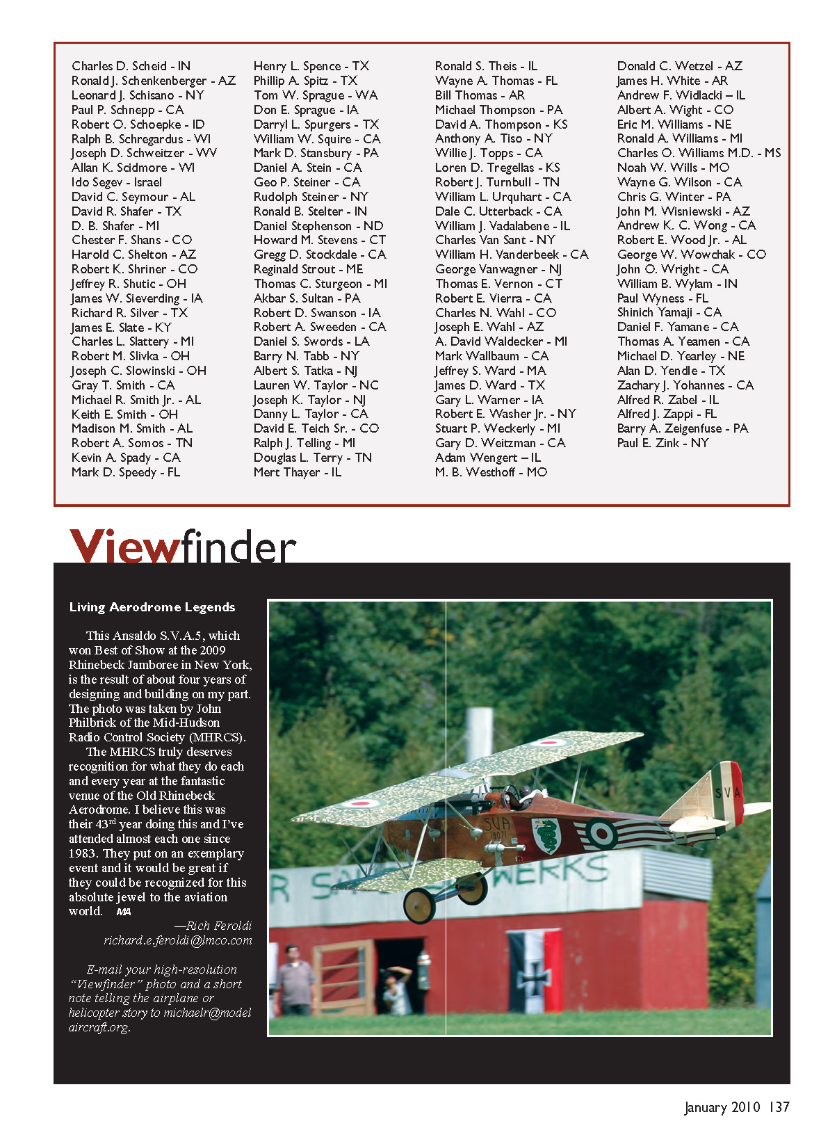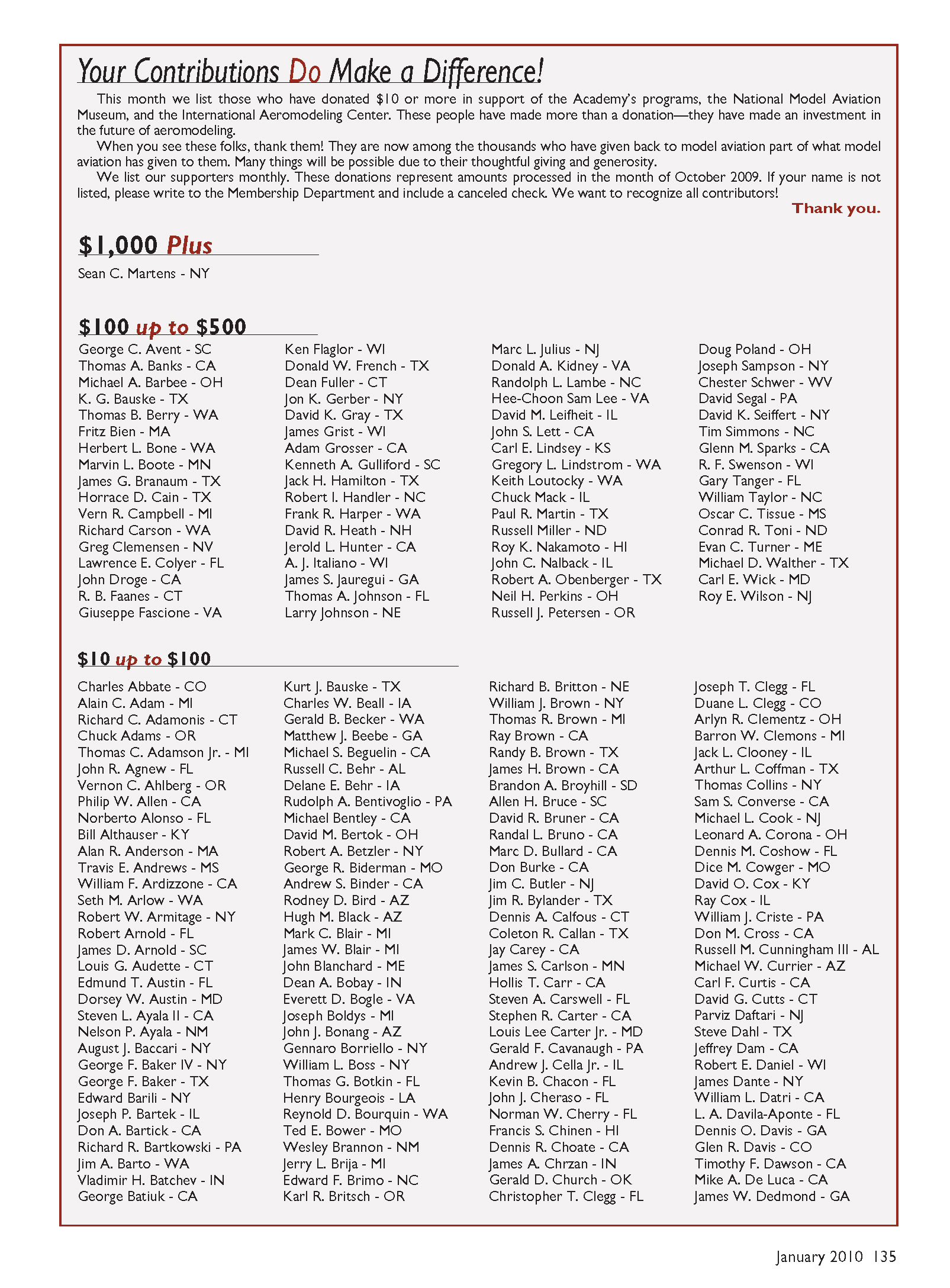 This month we list those who have donated $10 or more in support of the Academy’s programs, the National Model Aviation