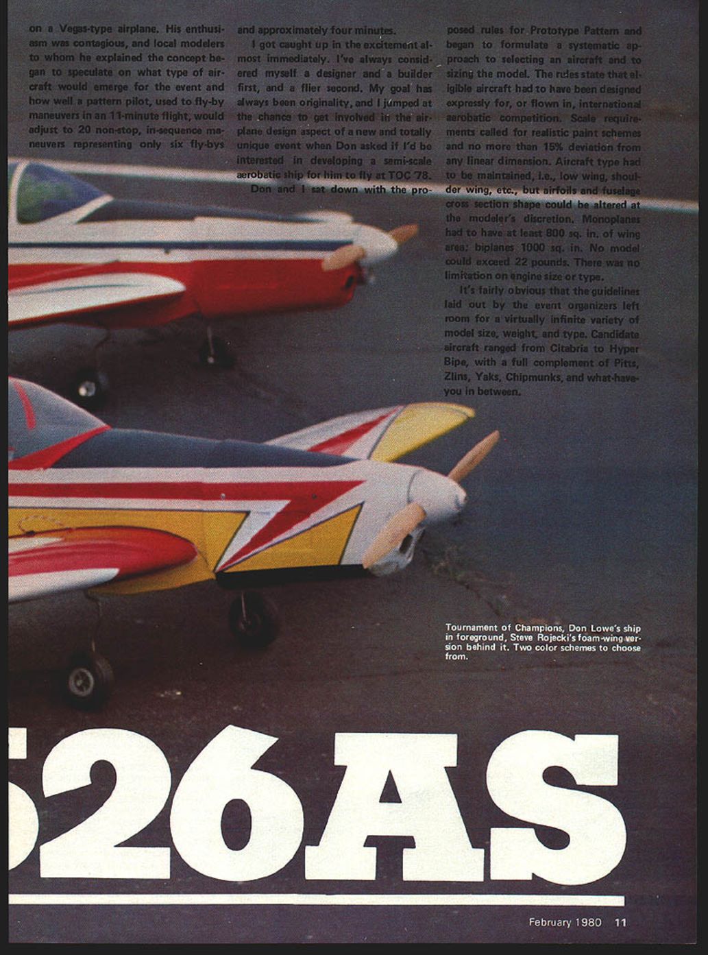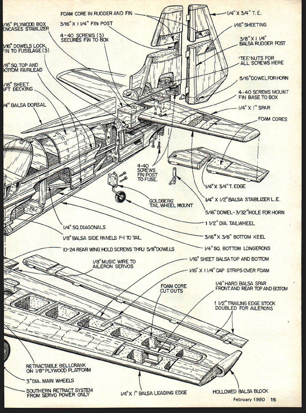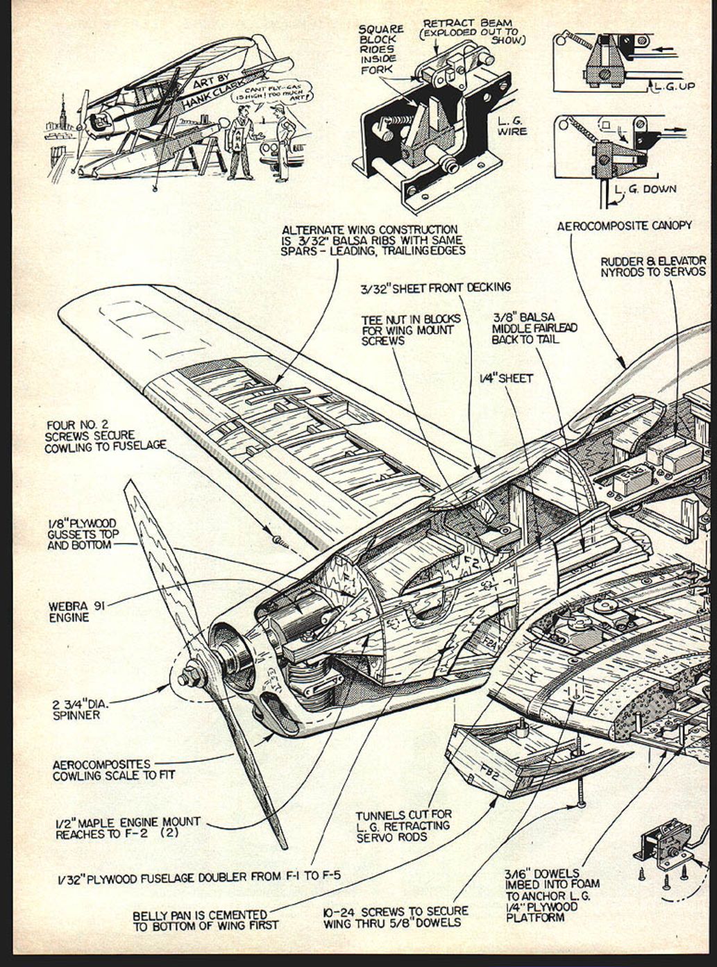 NO OCR TEXT NO OCR TEXT I SCENT I- I CSKCBc-CO lICK I I, ROCK-~c Alliii II JfpgTiC rI ICSONOOK PSFT IllsP5060110 0* FROB 106F0OOSKICK 0300 3~CO NKKKCOAIE01ItQS3i l&LCMCOCOBCCSOKSAL FIN SINK OKOCCISO ICSO0 PLOICSPLO0-00' r OCIKOO3KL573 OC OKKOKII OOEKLOCOSIK I..KOONlFS2PLO ICC SOUK 04013 pOKOOmI 40530 TMOSOKKL Naturally enough Don felt should seek aircraft similar layout Phoenix Zlin 526 726 series offered variety designs somewhat like Phoenix low-wing long-tail moment vehicles slightly swept wings Just finding full-scale aerobatic bird lines along success ful model design going enough however arrive winning design totally new event purpose avoid model flying characteristics stress scale realism decided go large light Large add realism presentation ease attitude recognition pilot judge Also large add drag slower flight again realism also help keep airplane 1200 box maneuvers performed Light weight considered essential vertical performance minimizing wing loading would allow sharp square comers flaps Another advantage light weight aerobatic aircraft Seen rear color-scheme lines emphasize feeling forward motion tenna strung stabilizer tip 12 Model Aviation Well-executed nose cowling really mean much Details ot tibergiass cowi snow up we. shotnote handling 4.m asn4 tho *sonInn Mir nnnnmnfl Just another picture provide another eyeview sne color scneme 11101 IS unarime Brown no Ice Mnlc fInuthrnusnl mumfflsr FULL SIZE PLANS AVAILABLE SEE PAGE 128 AICASONS LOAPJC/KAILWAASE7$5/SKOAKL PSOAOPCO oocsocxPSCMSATSSIALCCT n5/NACENT SAC III I S/SFLAT TOP SSAOSOLrCI S/A ISOCK 50 P55COMAI/ASPASTAPESS ACAS STACK SPACES/L/5S/SEALKM /LOS OP S/TA SCT P575555 ALLSACA SOOT ASK CT1 COT SACS/SBEAPtATPS SANK STACK1-U ACTAC PAN SCAM MASKS SAS TON ONE COLT AK/Sot5Ao5~OS MONET - X SET *I-2PM51 SAra S/lA SONTAIIfiAAA1AM NE iS/IA CSIAL-0515451C jF 05/IS ACAECttP tIZVCN II /S/ AGEMACAT POAS COATCCCNACCS~ SACASOC OCITSJ PANEL/Cl PS SIS/INOS ICS1/AMALSOp55 PCS 5/5505/SPM/CPBS MELLC PA ACCOLH OAMCS~ SOMI I/A SNUASO I I/S PCCI/A CCC Ii~2F /6II-I/-6-/vII//OSSOASK ACOOCENLACACICS OPI X KOCCOAOKkC /0 POSECCOK NOES _____________________________________________ III ThI jO fli AI EL PM II/A A/ALE MOCCA MO/NTCUT FRAN/NPUSECSOE ASKS IK SESOLOSCEKTSICK/AC PLO 00/MAPS/NO SOEKC IT IPASACNRO lASS PEAPSACALPSKLTION 00 I/S MACSMPTACONPSO7T- NOKOSjS/AC SOAPS rIIU/SSSOAAK~~ I/AS/C/ASS0I U[I II pIFS / H0500050/SC C/SPATS NOCCIOMA010 1/SOPLO1/ [ CUCTACAC 5/ASCOEC I I/N So/SECSET KACM/SF jMgj0I/SPLO5~ ISN-IS I/SNCUOSE] NLAOS CANE II / MOSPANI I/SN/C/COCKI/SM/AIOiMSj-ACOAS ~CUASE S SUNKCUT PACM I/S N/SECI II/MM/TO/CNL ASK CANOPY SE/CP1no 0550 CASASSICTS N/ASS/SN I CKASNKSO PLACE ----S often overlooked reduction inertia property also opposes cessation characteristics exactly what dont want angular moments inertia rotation airplane already rotating event precision point rolls snap An angular moment inertia mass property other words airplane high angular rolls required 3T maneuvers aircraft oppotes its rotation about moment inertia roll hard start rolling keeping structural weight absolute either its yaw pitch roll axis same difficult stop rolling once starts minimum could reduce moments February 1980 13 I I unsandL A/SSBCONAC /SSASSAC US SEA resmivemy simpie details complete tail detaches two separate pieces SACS ISS/odS 555 SES/Sy uc aeparaoeo orom inc stanhlizer reattached fuselage dowel two screws Facilitates transport i ysHIToo rU L 5QUARE RETRACT BEAM OUT TO BLOCS PLODD 5H0W 0 Up d\m ALTERNATE WING CONSTRUCTiON IS 3/3Z BALSA RIBS WITH SAME SPARS LEADING TRAILING EDGES 3/32 SHEET FRONT CECKING AEROCOMPOSITE CANOPY RUDDER & ELEVAlOR NYRODS TO SERVOS 3/8 BALSAN MIDDLE FAIRLEAD 6CKTO TAlL FOUR NO 2 SCREWS SECURE COWLING TO FUSELAGE I/8PIWJOD GUSSETS lOP AND BOTTOM WEBRA 91 ENGINE 2 3/4DIA- SPINNER AEROCOMPOSITES COWLING SCALE TO FIT 1/2 MAPLE ENGINE MOUNT . RECHESlOF-2 2 1/32 PLYWOOD FUSELAGE DOUBLER FROM F-I BELLY N IS CEMENTED 10 BOlTOM OF WING FIRST -24 SCREWS TO SECURE WING THRU 5/8 DOWELS 3A6 DOWELS IMBED INlO FOAM TO ANCHOR L G I/4 PLYVOD PLATFORM FOAM CORE IN RUDDER AND FIN II/4X3/4TE /16 PLYWXfl BOX3/16 X 1/4 FIN POSTI ENCASES STABILIZER1/16 SHEETING 5A6 DOWELS LOCKBALSA RUDDER FOST 1N TO FUSELAGE 3 /8 SQTOP ANDALL SCREWS HERE 3011DM FAIRLEAD 5/ 1600 WELFOR HORN 4-40 SCREWS MOUNT FIN BASETO BOX 4 BALSA DORSAL FOAM CORES / // WS I\~IssFiNPOST /GOLDBERG1/4 X 1/2 BALSA STABLIZER LE 5/16 DOWEL- 3/32 HOLE FOR HORN 1 1/2 DIA TAILWHEEL 1/4 SQ DIAGONALS 1/8 BALSA SIDE RINELS F-I 10 TAL3/16u X 3/8 BOTTOM KEEL V4SQ BOTTOM LONGERONS 10-24 REAR WING HOLD SCREVJS ThRJ 5/8DOWELS 1/8 MUSIC WIRE TOI/I& SHEET BALSATOP AND BOTfOM AILERON SERVOSV16 X 1/4 CAP STRIPS OVER FOAM 1 1/2 TRAILING EDGE STOCK DOUBLED FOR AILERONS 2 RETRACTABLE BELLCRANK ON 1/8 PLYWOOD PLATFOFA 1/4 X BALSA LEADING EDGEHOLLOWED BALSA BLOCK 3DIA MAIN WHEELS SOUTHERN RETRACT SYSTEM FROM SERVO POWER ONLY February 1980 15 1/4 HARD BALSA SPAR FRONT AND REAR TOP AND BCIlTCM inertia insure crisp totally controllable rotations aircraft about its axes finally settled Zlin 526 AS basis project 526 AS singleplace aerobatic low wing faired-in canopy in-line engine wing fairly high aspect ratio implies good roll damping leading edge swept straight trailing edge resulting wing sweep about 4 degrees Thrust line wing horizontal tail separated vertically very much usually means control coupling less likely Vertical tail size large enough scale directly horizontal tail size increased span chord maximum allowable 15% scale engine cowl allowed very neat inverted instal lation Webra 91 chosen power Finally retractable landing gear real aircraft allowed us include feature model well course airplane can improved made some subtle changes within rules hopes achieving model would fly con siderably better true scale replica Sym metrical airfoils substituted wing shortened its aspect ratio reduced widening tip chord wing also moved forward inch lengthen tail moment improve balance thrust line horizontal tail l