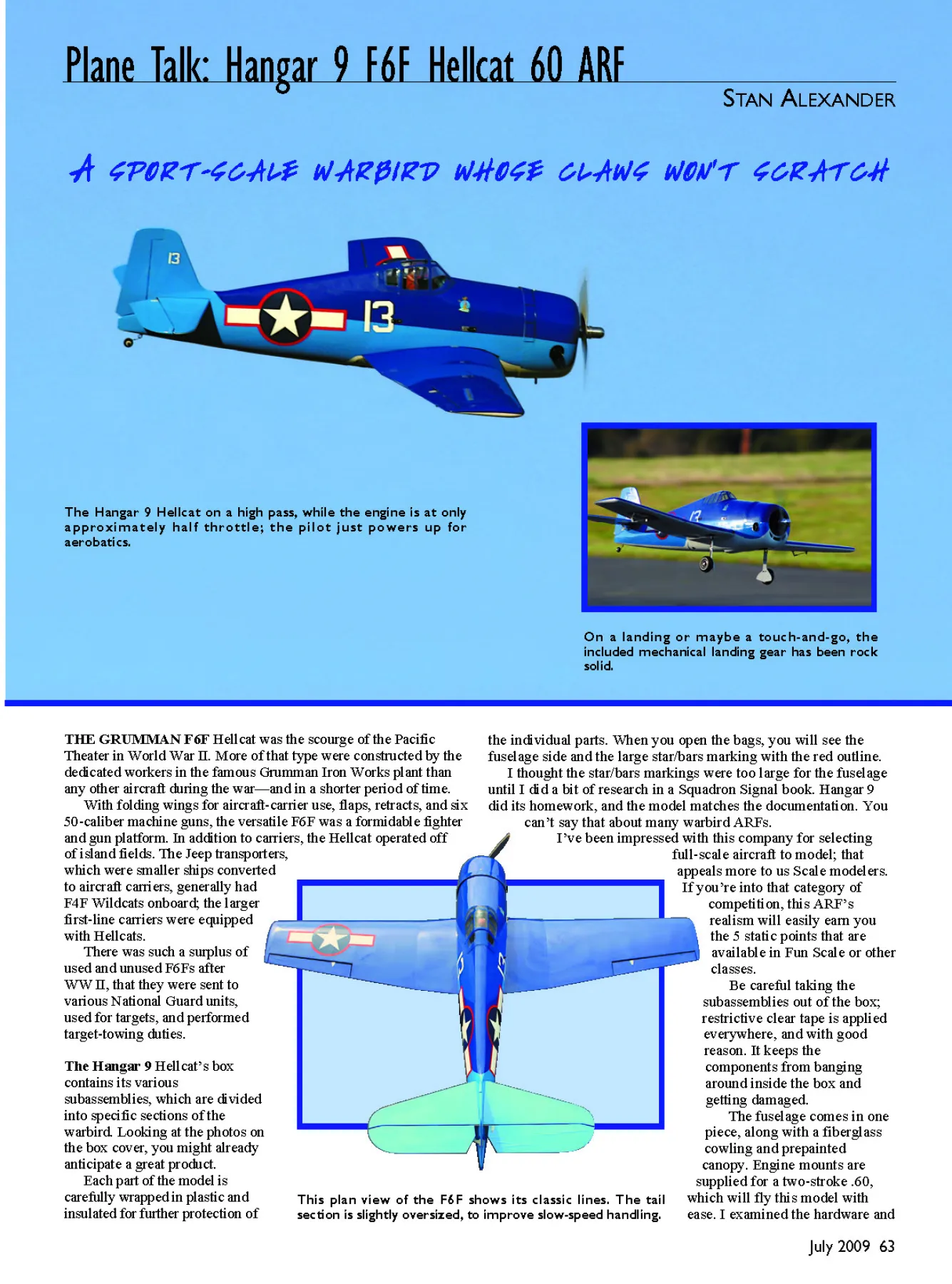 Plane Talk: Hangar 9 F6F Hellcat 60 ARF - 2009/07